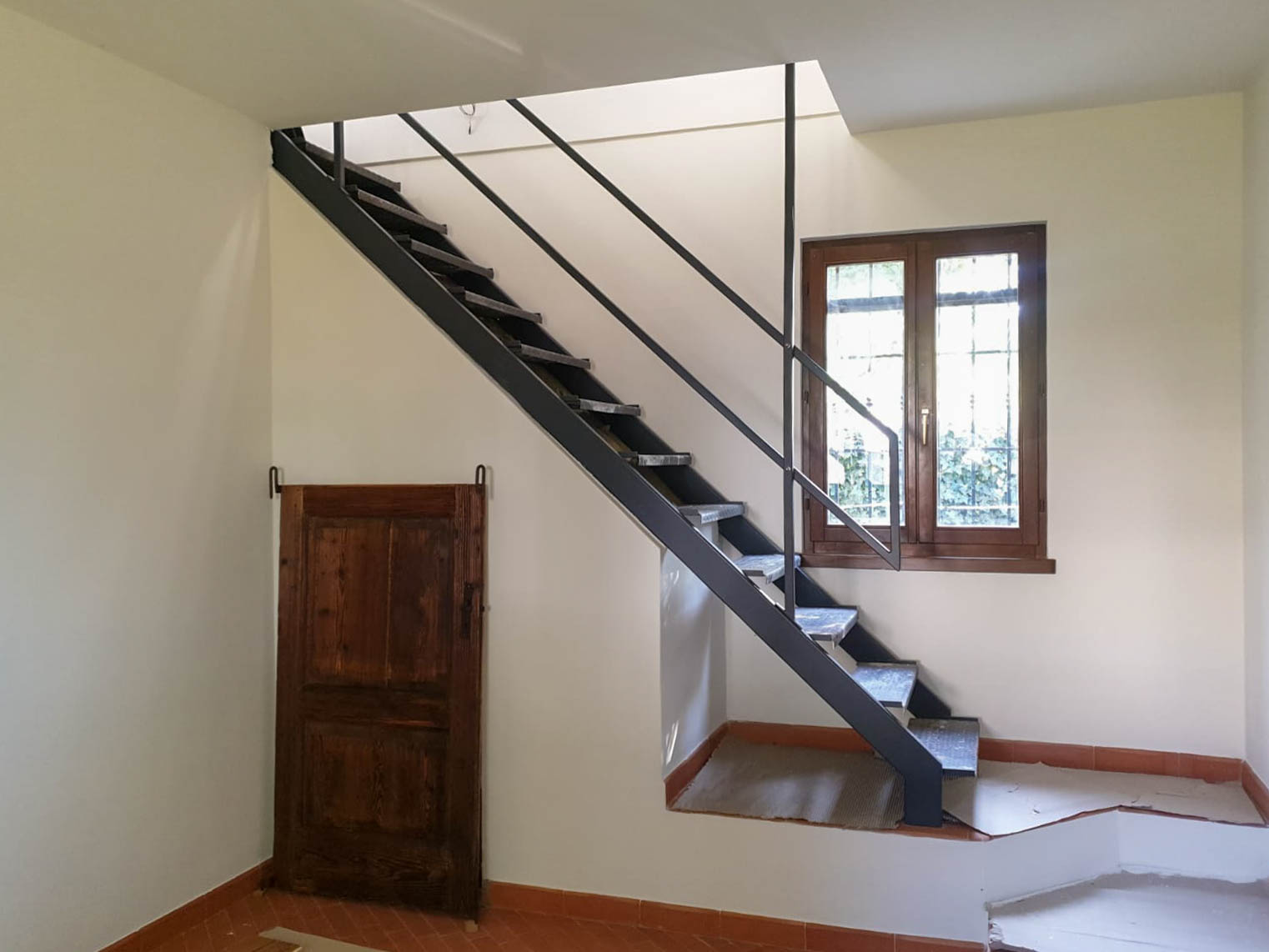 L’intervento ha richiesto un lavoro approfondito sulle murature storiche e sulle superfici in mattoni, riportate alla loro estetica originaria tramite tecniche di pulitura e ripristino. Le travi in legno sono state recuperate e trattate, diventando protagoniste negli interni, mentre i nuovi tramezzi e gli elementi costruttivi sono stati integrati in modo discreto, rispettando le geometrie e le proporzioni dell’edificio.