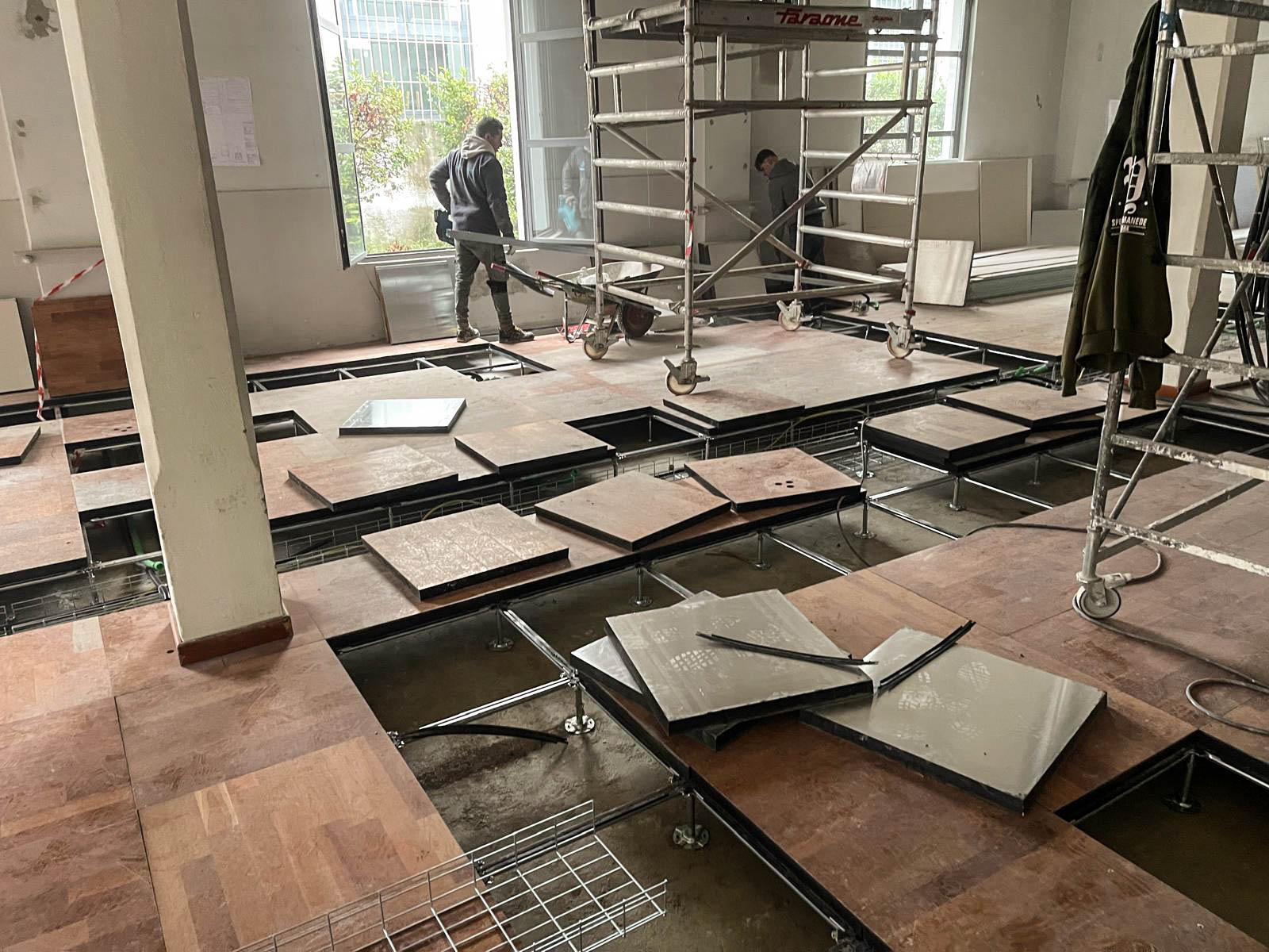 Le lavorazioni hanno incluso la realizzazione di nuove pareti divisorie e la posa di pavimentazione sopraelevata, consentendo una gestione efficiente degli impianti e una maggiore adattabilità degli spazi alle esigenze operative e progettuali.